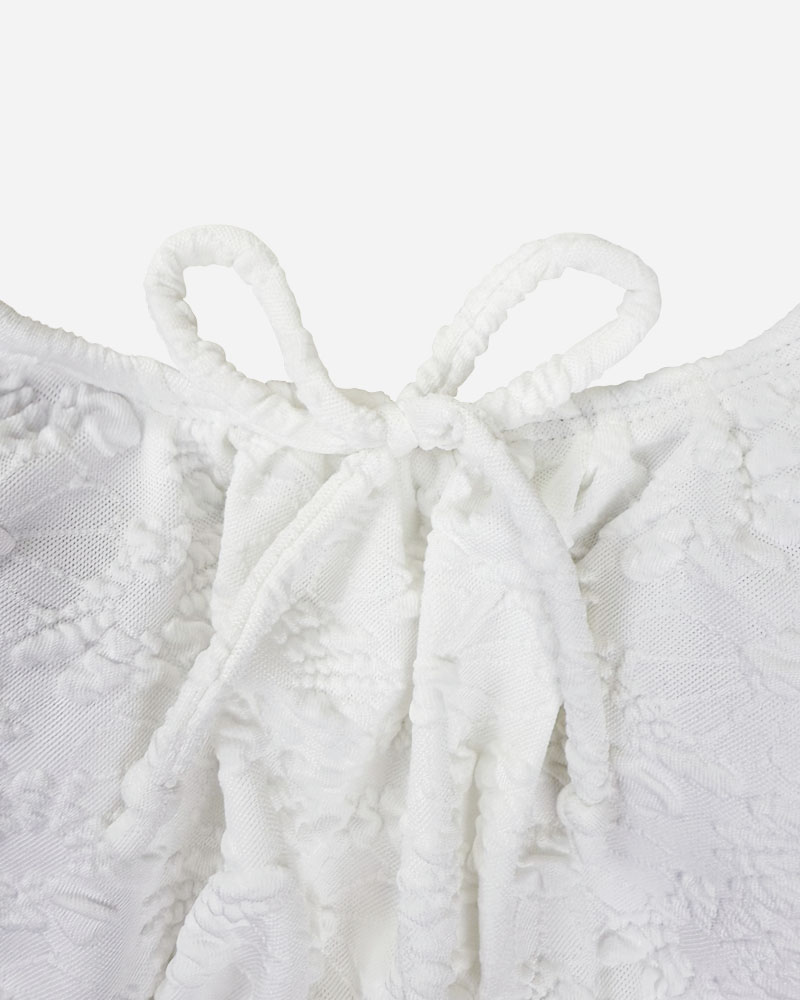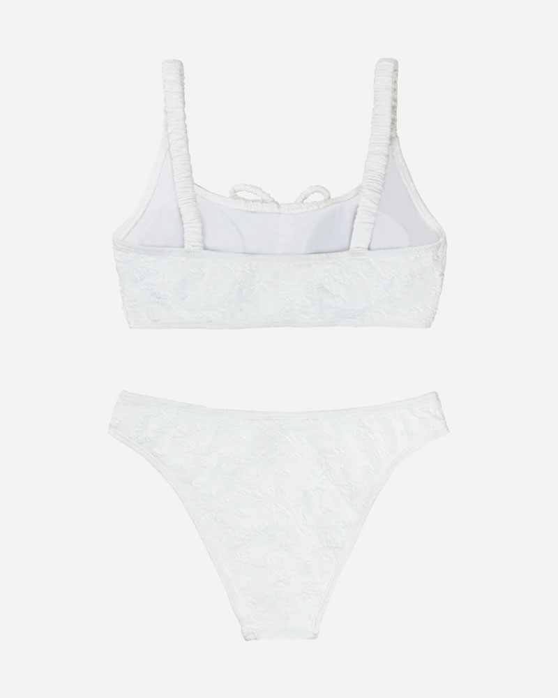 Brace yourself for the irresistible charm of Floral Jacquard Bowknot Bikini Top & Mid Rise Bikini Bottoms Set.