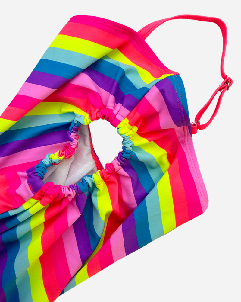 Experience the fusion of fashion and functionality with Stripe Asymmetrical One Piece Swimsuit.