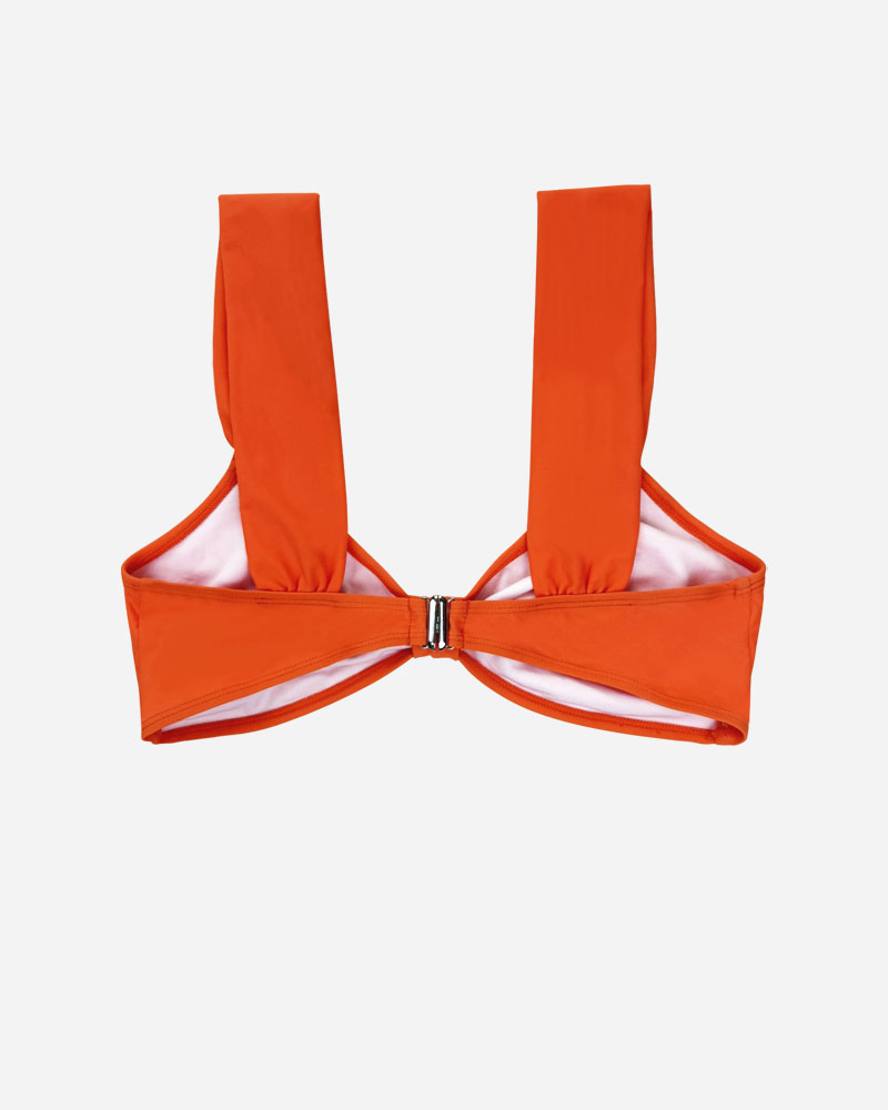 Elevate your beach look to the next level wearing Knot Front Clip Closure Bikini Top.