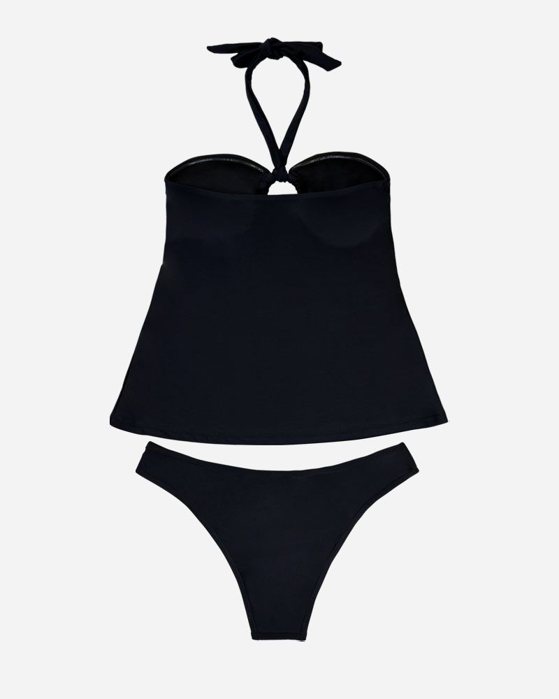 Get ready to be captivated by the allure of Halter O-Ring Tankini Top & Hipster Bikini Bottoms Set.