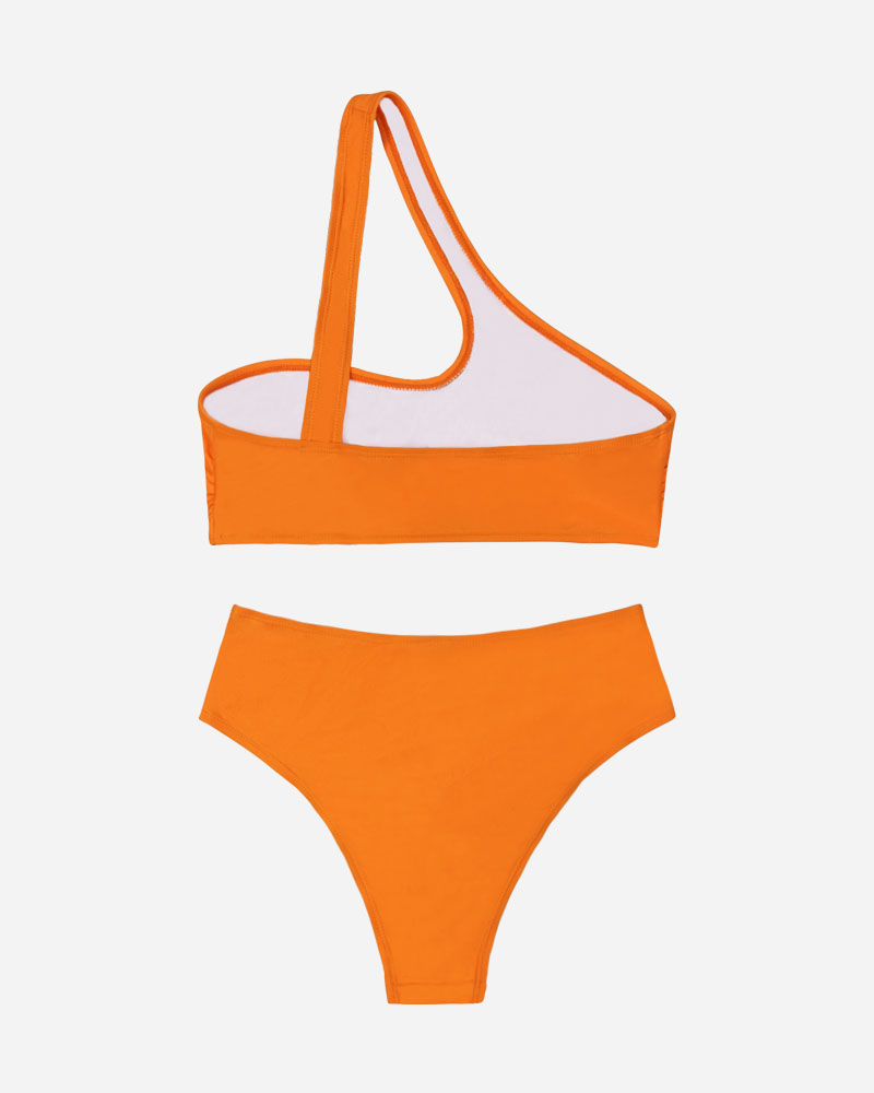 Elevate your beach look to the next level wearing Asymmetrical Cut Out Bikini Top & High Cut Bikini Bottoms Set.